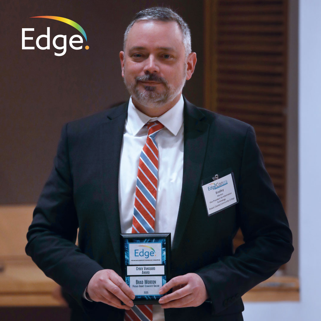 The Cyber Vanguard Award recognizes individuals who lead the charge in safeguarding the future of education through resilience, foresight, and dedication. This year, we are honored to present the award to Brad Morton of Passaic County Community College. Under Brad’s leadership, Passaic County has set a high standard for the higher education sector by implementing proactive security measures, promoting a culture of cyber awareness, and ensuring the protection of the learning environment for students, faculty, and staff alike. Brad’s work truly embodies the spirit of this award.